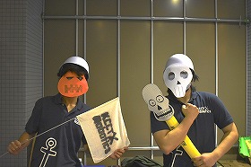 | Aチーム: | 曲線を用いた機構やARマーカー等、例年には無い技術を多く用いて、旗を用いた踊りを連携して行うロボット |